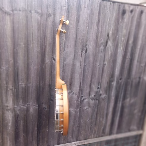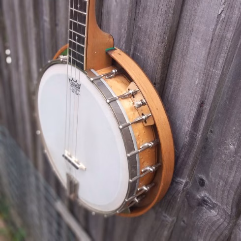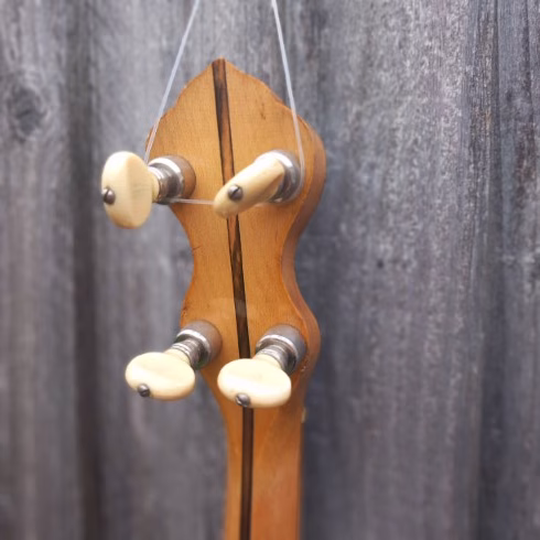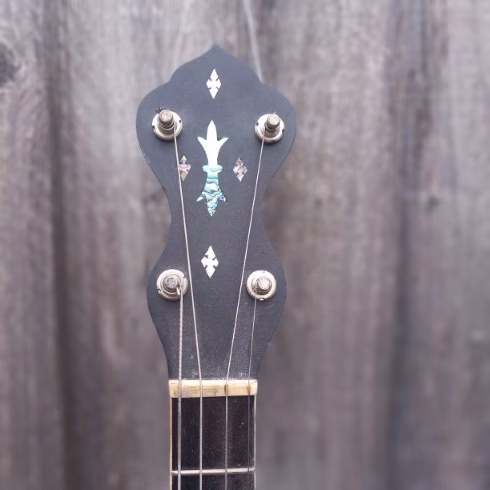 Wurlitzer short scale (USA), c.1930s, natural maple, 10 ¾” thick maple rim, 20½” scale, 17 fret neck, bound ebony fbd with pearl diamond inlays, ebony phd overlay with fancy abalone inlays, nickel plated hardware, archtop tonering, new geared Planet tuners & tailpiece, period correct resonator is later addition, likely made for Wurlitzer by Slingerland (Chicago), easy action with strong tone & projection for Celtic reelism, EC, GB.